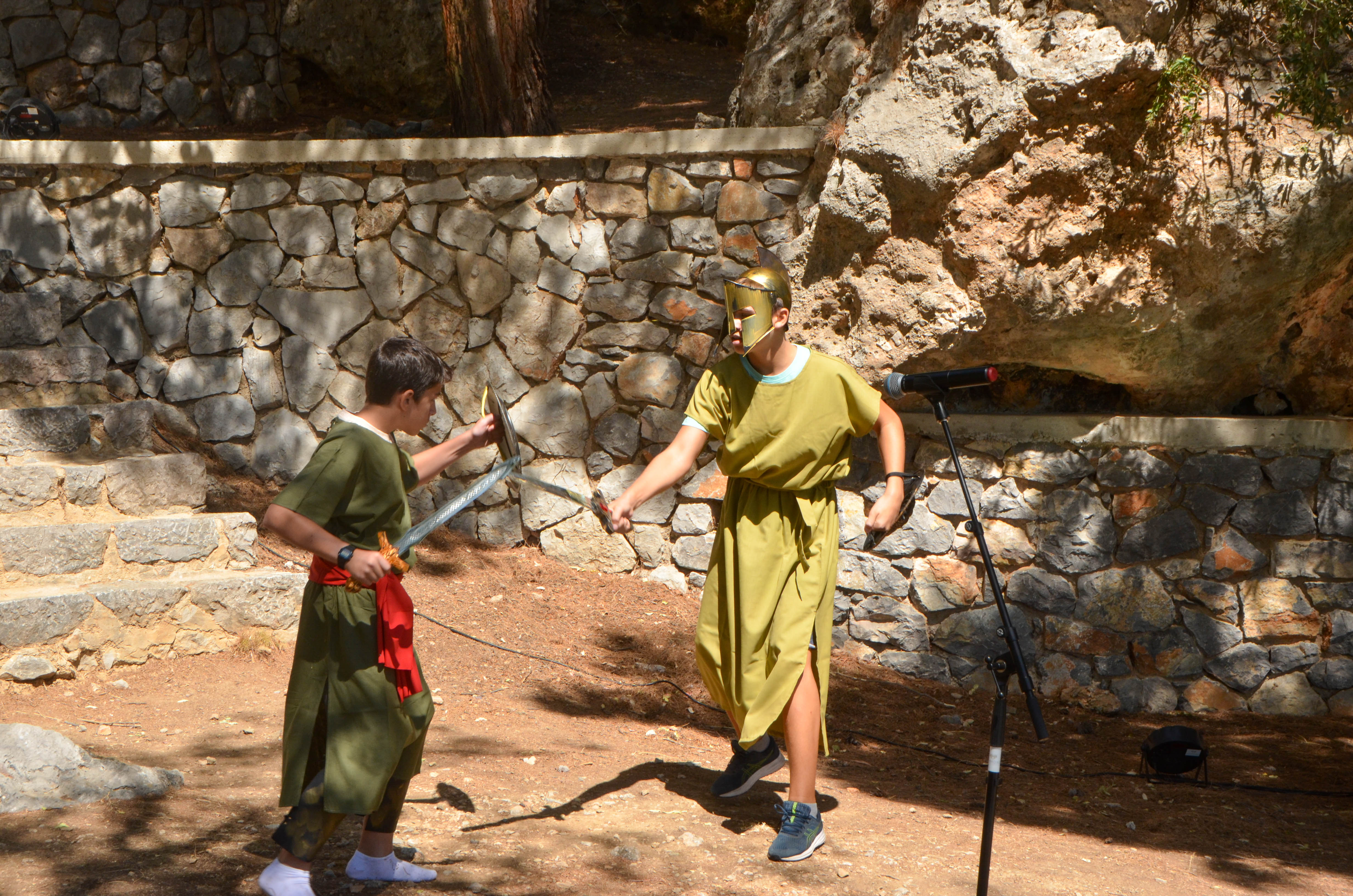 A crowd of people and the participating schools attended the presentation of the opera "Iliad" by Homer at the archaeological site of Daskalopetra or Homer's Stone which is the monument where Homer taught the epics Iliad and Odyssey in Chios. It should be noted that in the sanctuary on the rock of Homer, the relief with the seated goddess Cybele and the two lions flanking the throne and a representation of the relief with Homer and the Muses are faintly erased on the eroded stone.